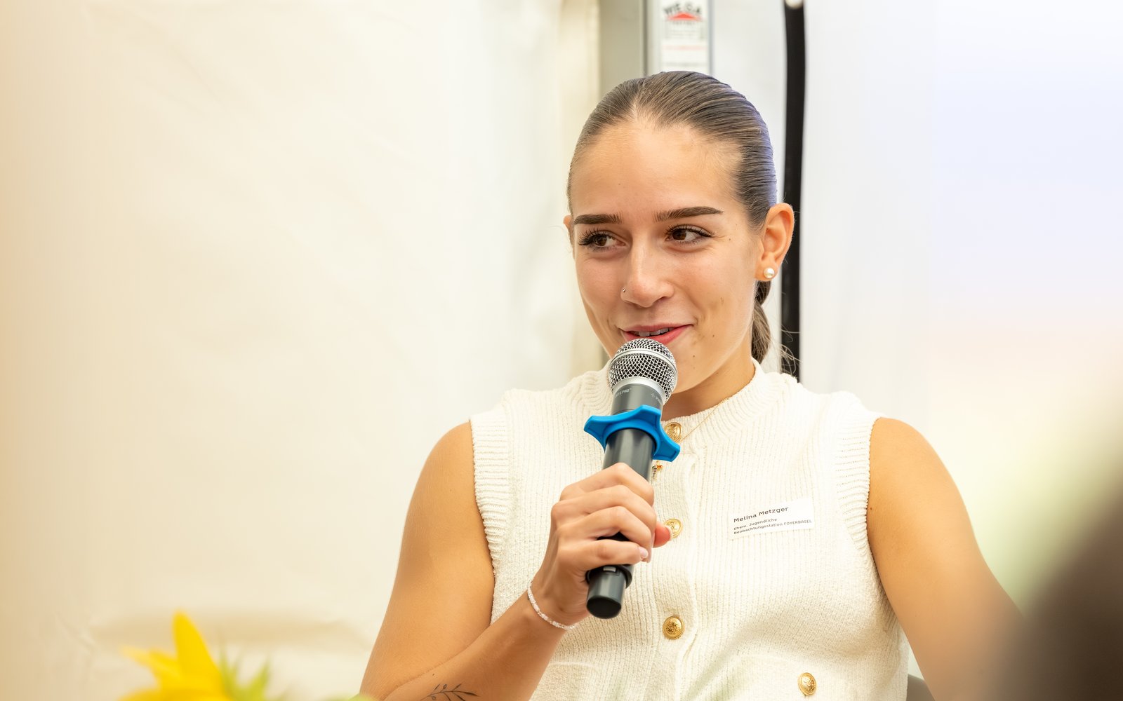Die Psychologin Sara Koller moderierte mit spannenden Fragen eine Podiumsdiskussion, an welcher drei ehemalige Bewohner*innen teilnahmen und offen über ihr Fazit nach ihrem Aufenthalt in der Beobachtungsstation sprachen.